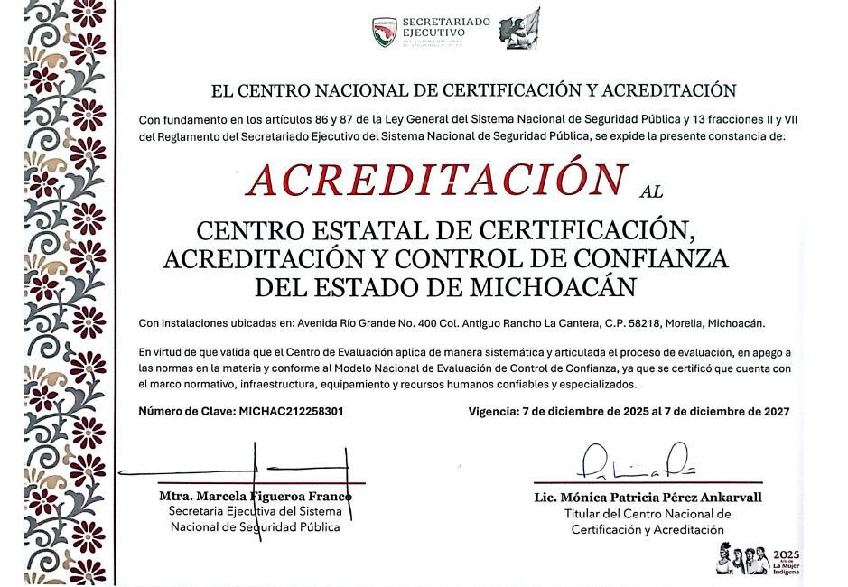 El CECACC pasó de ser un órgano creado por Decreto en 2009 a convertirse en una institución con pleno reconocimiento en la Ley del Sistema Estatal de Seguridad Pública desde 2012. Hoy se consolida como la instancia encargada de garantizar, mediante procesos estandarizados, la profesionalización y confiabilidad del personal de seguridad en Michoacán.